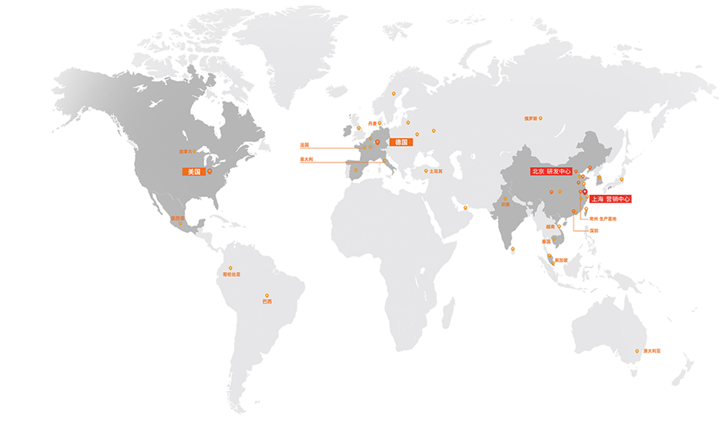 圍繞全球總部和制造基地在華東、華南、華北等地區(qū)建立了營(yíng)銷(xiāo)中心,在美國(guó)、德國(guó)等地建立了海外售后服務(wù)中心?,F(xiàn)有200余家代理商伙伴,遍布全球50多個(gè)國(guó)家,可以為您提供高效、便捷的專(zhuān)業(yè)服務(wù)。